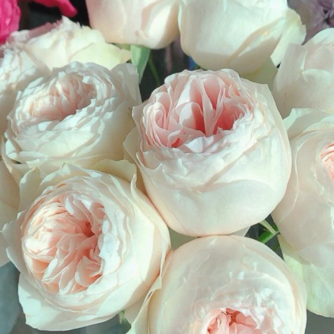 As the seasons change, so does the stunning Emma Woodhouse rose. Its large, peony-like blooms shift from a soft cream pink at lower temperatures to orange/apricot in warmer weather. Its abundant, cupped-shaped flowers produce a strong fragrance – a bold burst of fruit with delicate tea notes.